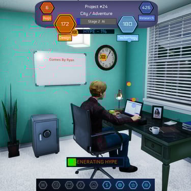 The main goal of the game is to make asset flips and churn out games to make money. If you can acquire $10,000 you can buy a better life.