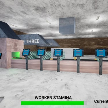 As you progress you will unlock additional machinery to scan and auto collect minerals from a line, allowing you to expand into additional lines. You will need to repair machines and drink unreal energy drink to keep your stamina up.